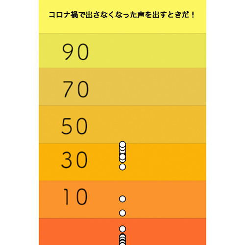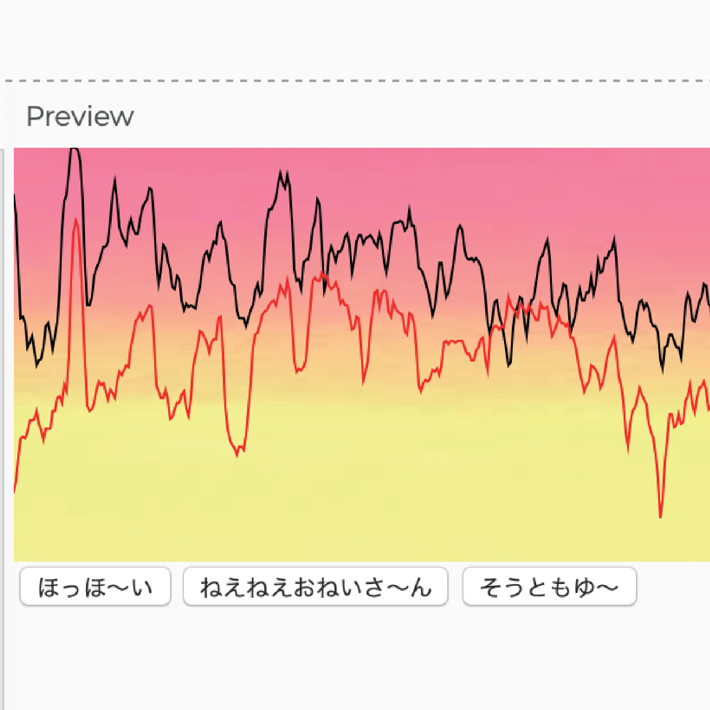 しんちゃんのモノマネを練習するためのアプリです。それぞれのしんちゃんボタンを押すとしんちゃんの本物の声が流れます。またしんちゃんの周波数のグラフが赤色、自分の声の周波数のグラフが黒色でリアルタイムで表示され、どのぐらい自分の声としんちゃんの声が近いのかを波形を見て比べることができます。モノマネの練習をする時に自分に聞こえる声と周りに聞こえる声が違うためいちいち録音して確かめるのが面倒だったので、リアルタイムで波形を見て聴覚的にだけでなく視覚的にもモノマネの完成度を確かめられるようなものを作りました。 本作品は著作権保護の観点から閲覧できません.